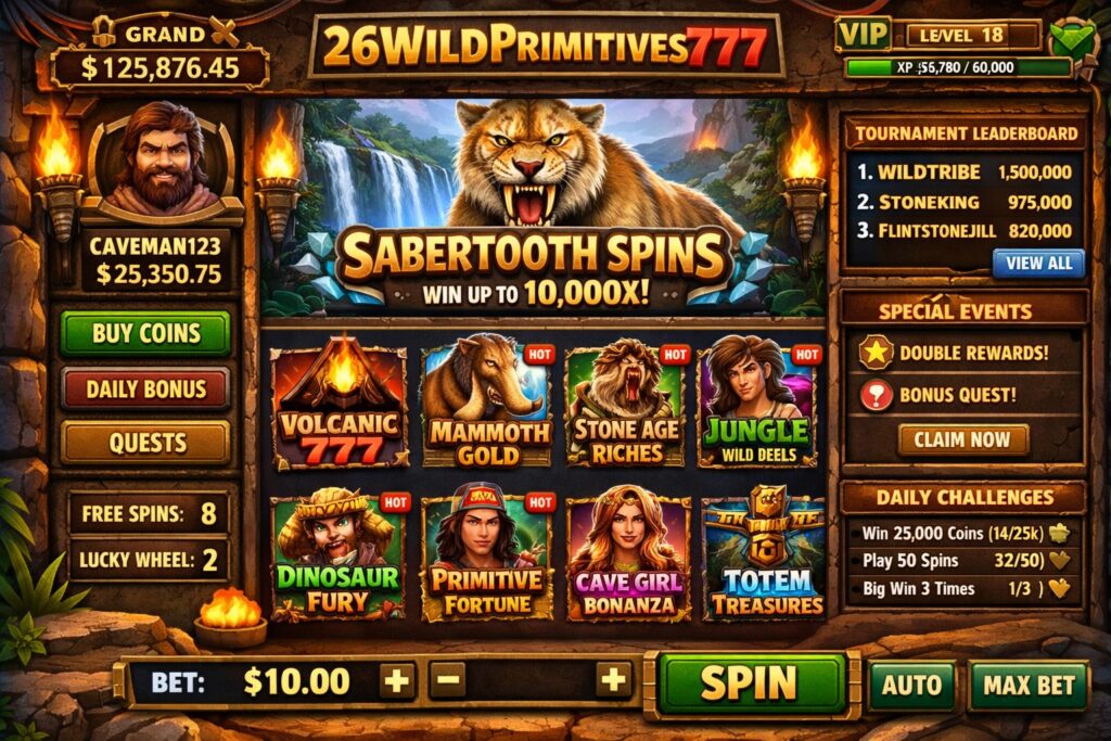 26WildPrimitives777 mixes excitement, simple rules, and chances to earn rewards. That’s why it has become popular among casual players. People use it mainly to relax, enjoy gameplay, and try their luck in a friendly digital environment. With smooth controls and colorful visuals, it keeps players interested from the first moment.