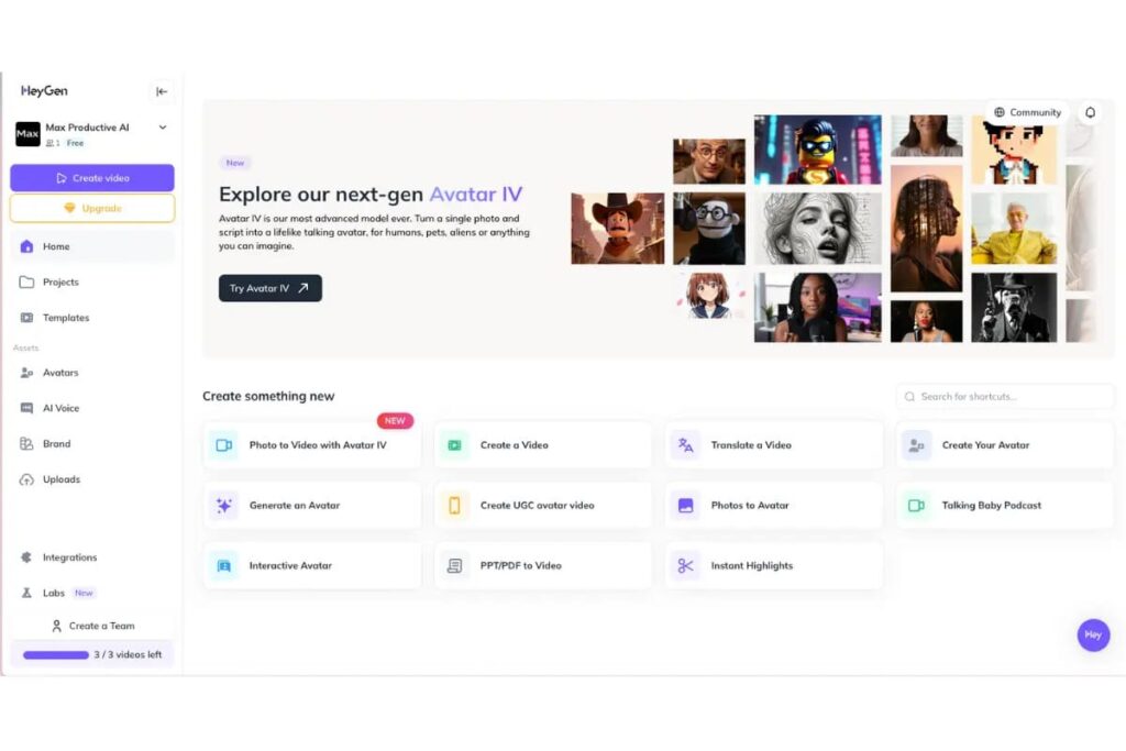 - Start using HeyGen AI Video online.
