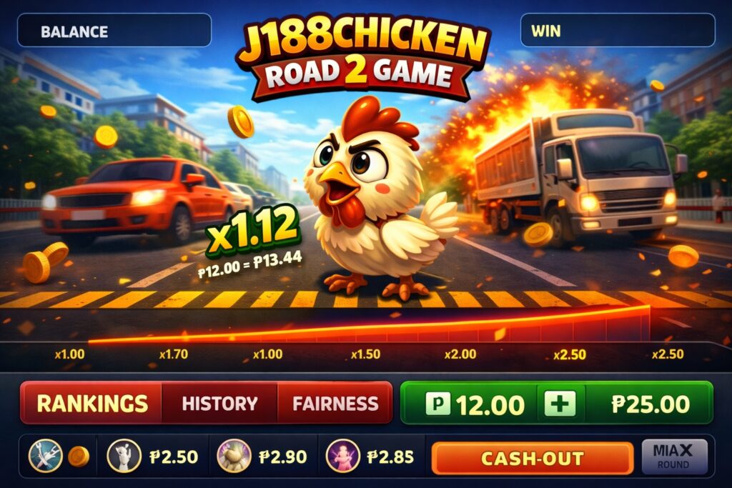 The J188chicken road 2 Game is a fast-paced, risk-and-reward arcade game inspired by the “cross the road” concept mixed with crash-game mechanics. Players guide a chicken across a dangerous road filled with moving obstacles, increasing multipliers, and timing-based decisions.